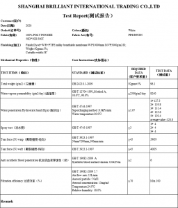 Protective suit fabric Test report